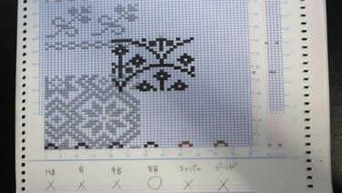 昨日の続き、KH910で模様編みのテストです。まずはシルバー機用の手作り模様カードでのテスト。綺麗に編めました。次はブラザー機用に作り直した創作カードに手書きの模様。鉛筆は手持ちの物を検証した結果 8Bの鉛筆のみ使用可能です。カードの中央に...
